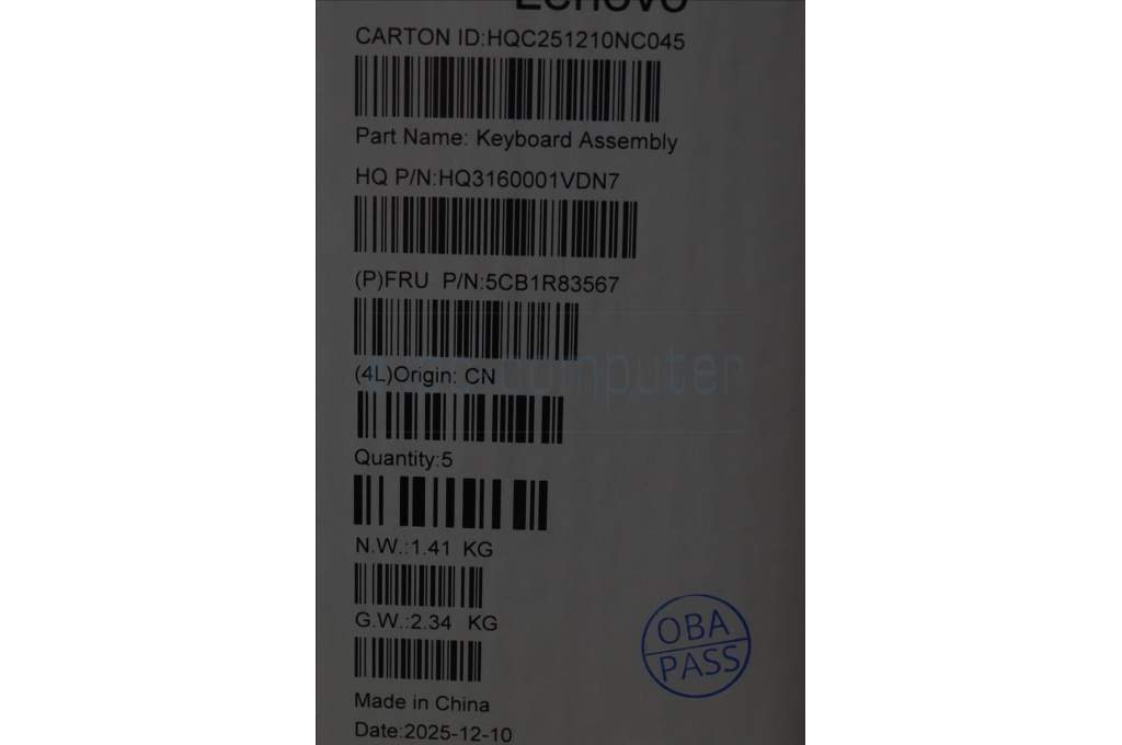 Lenovo 5CB1R83567 C-Cover with keyboard, French, Seashell, Non-FingerPrint, Non-Puresight Logo, US