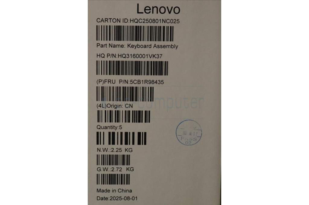 Lenovo 5CB1R98435 C-Cover with keyboard, Portuguese, Seashell, FingerPrint, Puresight Logo, UK