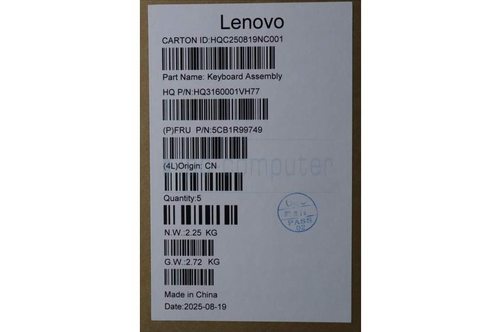 Lenovo 5CB1R99749 C-Cover with keyboard, Icelandic, Seashell, Non-FingerPrint, Puresight Logo, UK