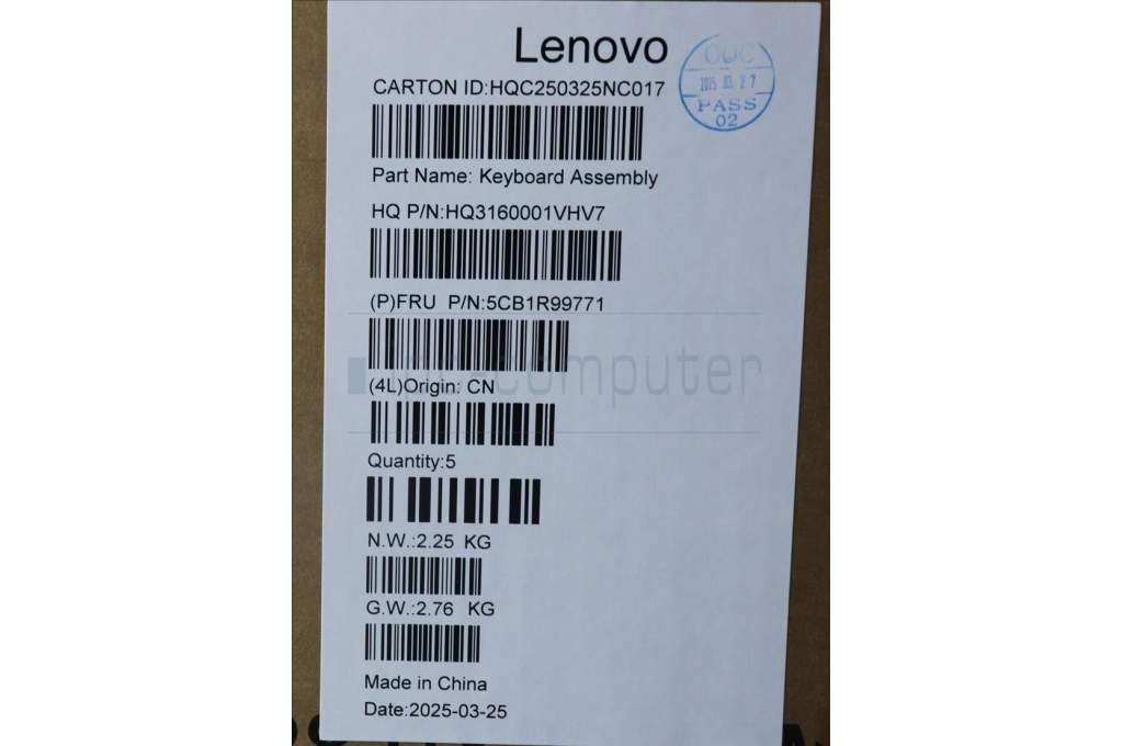 Lenovo 5CB1R99771 C-Cover with keyboard, Switzerland, Seashell, Non-FingerPrint, Puresight Logo, UK