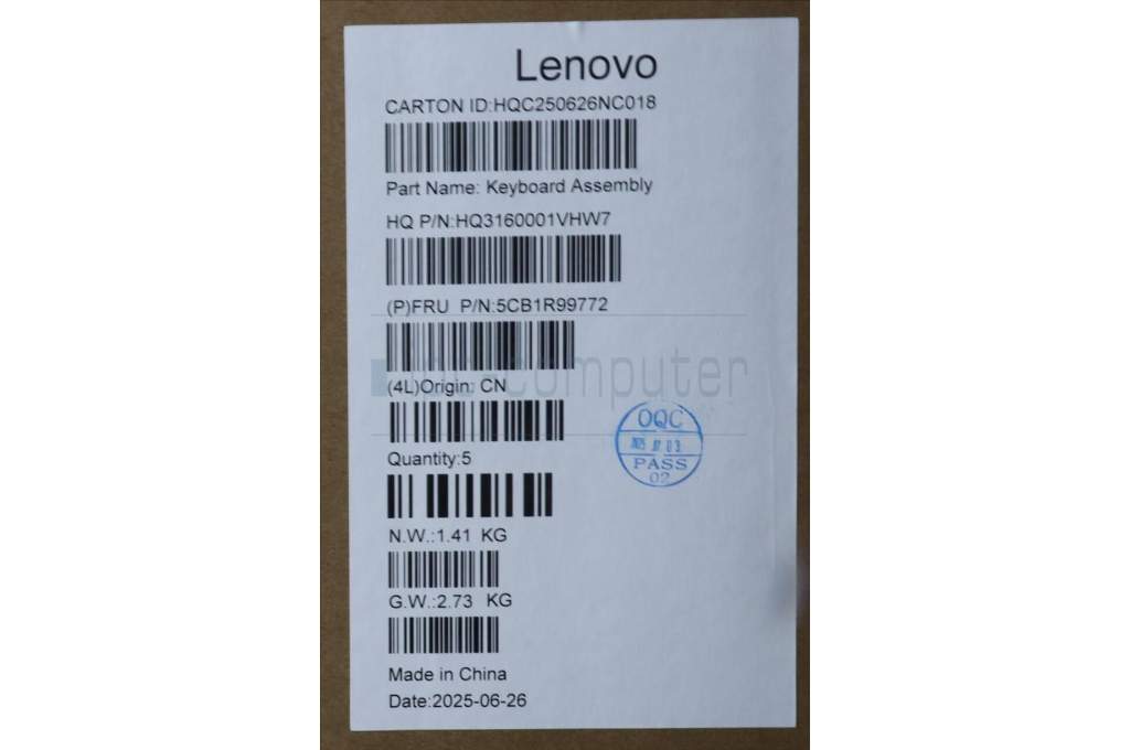 Lenovo 5CB1R99772 C-Cover with keyboard, Switzerland, Seashell, Non-FingerPrint, Non-Puresight Logo, UK