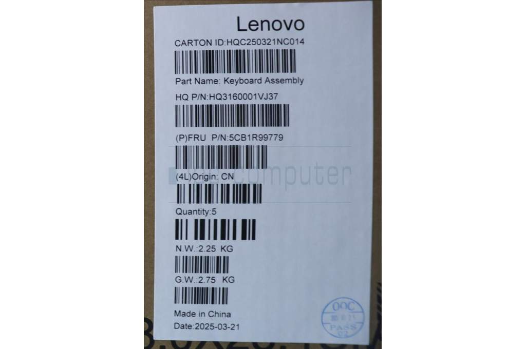 Lenovo 5CB1R99779 C-Cover with keyboard, UK English, Seashell, Non-FingerPrint, Puresight Logo, UK