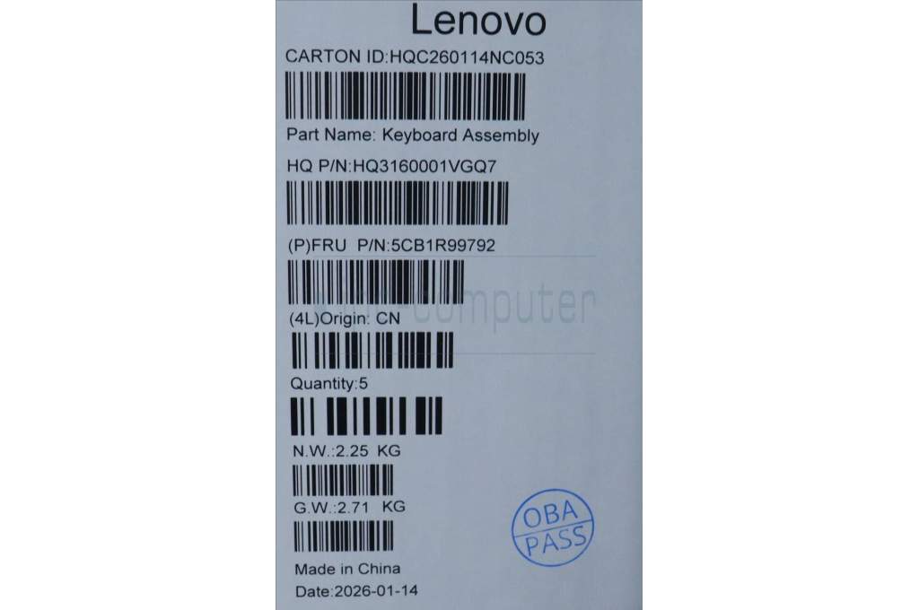 Lenovo 5CB1R99792 C-Cover with keyboard, Belgian, Seashell, Non-FingerPrint, Non-Puresight Logo, UK