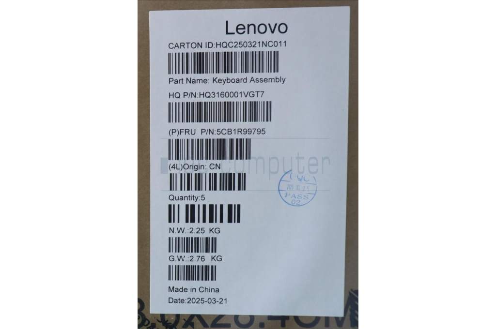 Lenovo 5CB1R99795 C-Cover with keyboard, French, Seashell, Non-FingerPrint, Puresight Logo, US