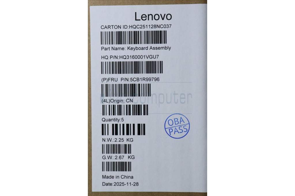 Lenovo 5CB1R99796 C-Cover with keyboard, French, Seashell, Non-FingerPrint, Non-Puresight Logo, US