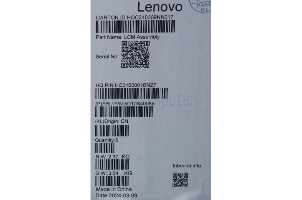 Lenovo 5D10S40089 DISPLAY HUD H 83E3 14 WQXGA TT