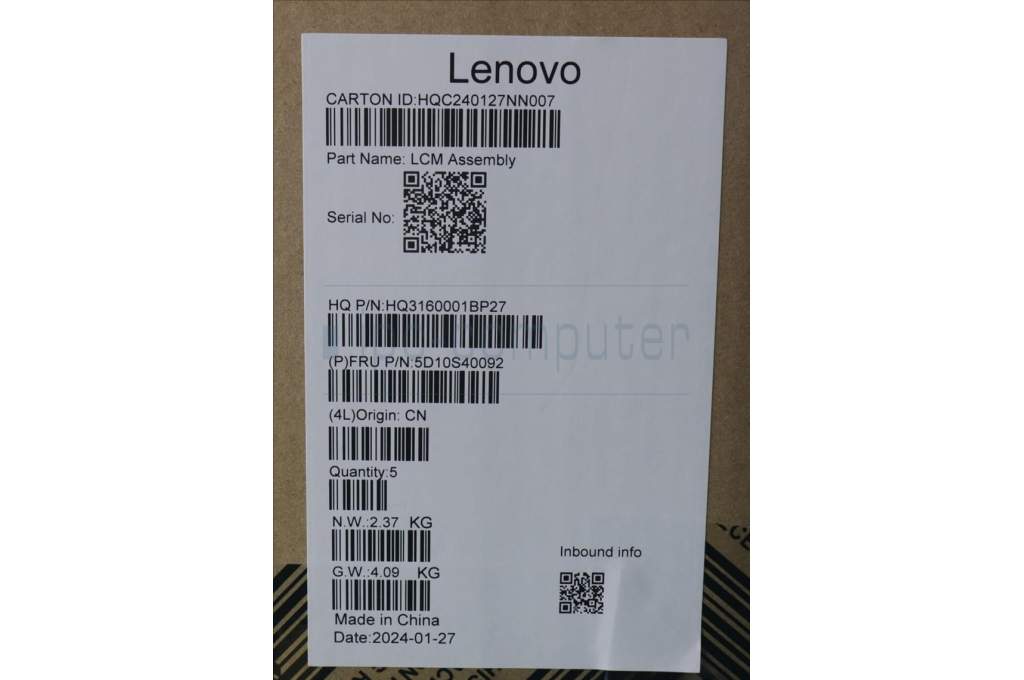 Lenovo 5D10S40092 Lenovo LCD Module,14.5",WQXGA,Touch,Anti-Glare,IPS,350nit,100%sRGB