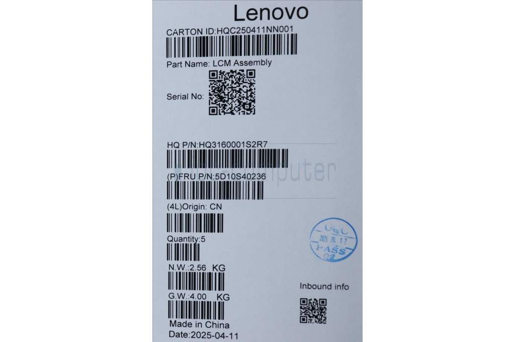 Lenovo 5D10S40236 Lenovo LCD Module, 14", WUXGA, Touch, Glare, Anti-smudge, IPS, 300nit, 45%NTSC, Luna Grey, W/FHD+IR Camera