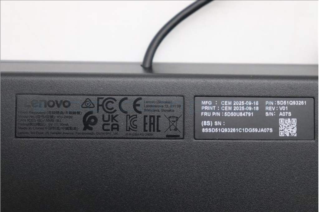 Lenovo 5D50U84791 AI Keyboard External, USB, Norwegian, Black