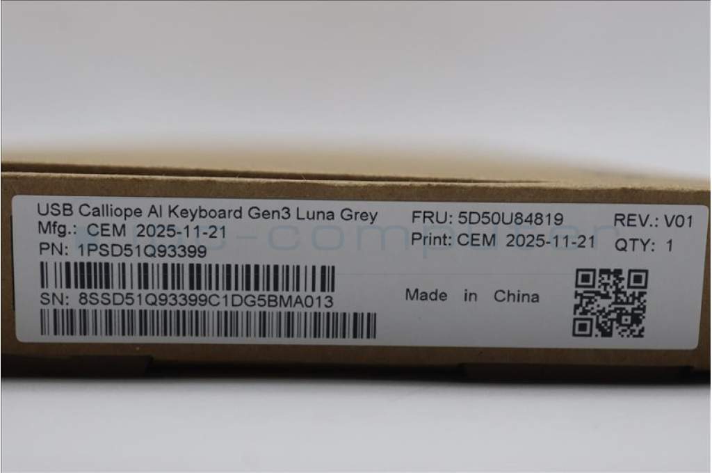 Lenovo 5D50U84819 Keyboard External, USB, Belgium English, Luna Grey