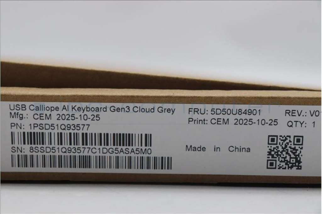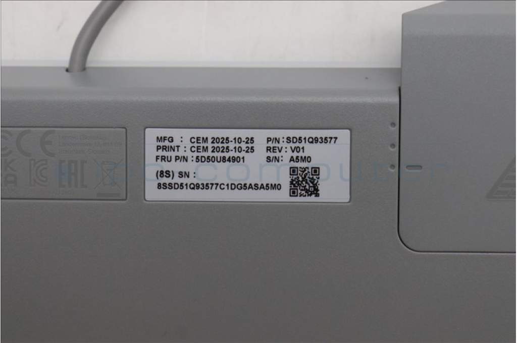 Lenovo 5D50U84901 Keyboard External, USB, US English Euro, Cloud Grey