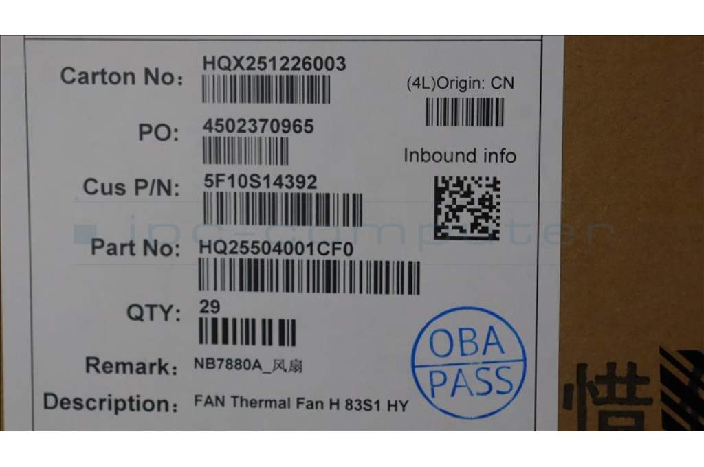 Lenovo 5F10S14392 Thermal Fan 83S1