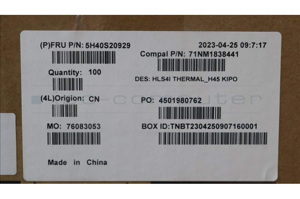 Lenovo 5H40S20929 Heatsink C 82XD H45 KIPO
