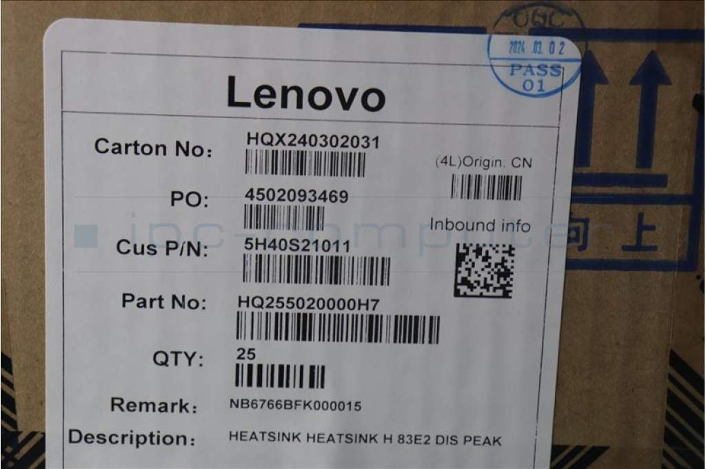 Lenovo 5H40S21011 HEATSINK H 83E2 DIS PEAK