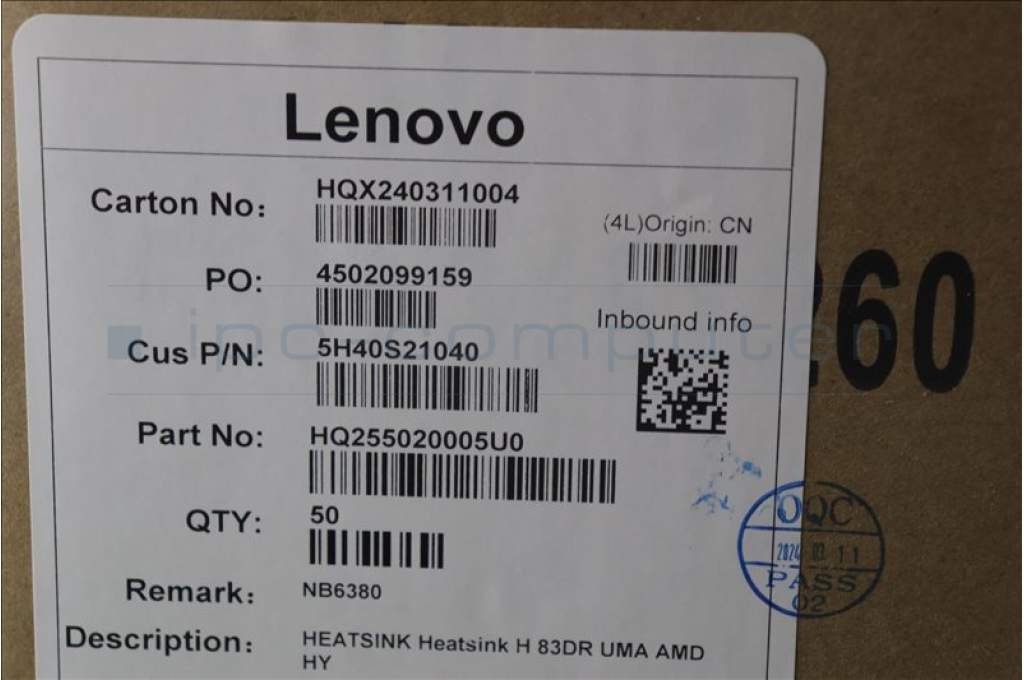 Lenovo 5H40S21040 Heatsink H 83DR UMA AMD HY