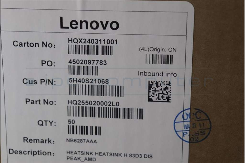 Lenovo 5H40S21068 HEATSINK H 83D3 DIS PEAK_AMD
