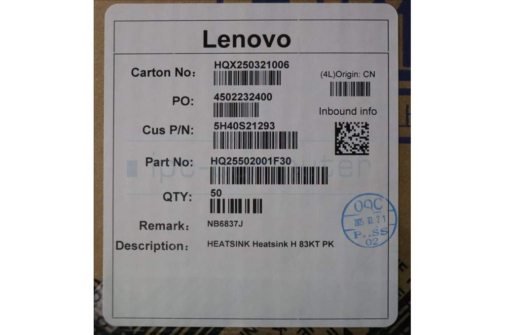 Lenovo 5H40S21293 Heatsink H 83KT PK