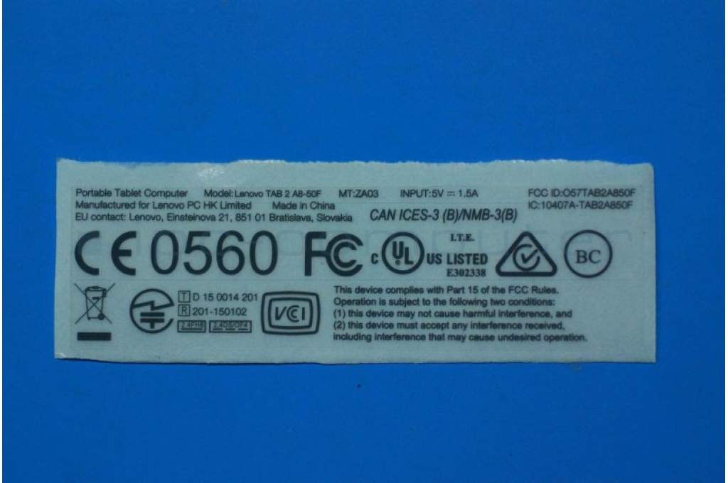 Lenovo 5L18C02079 A8-50F Rating label &*70152675 CS