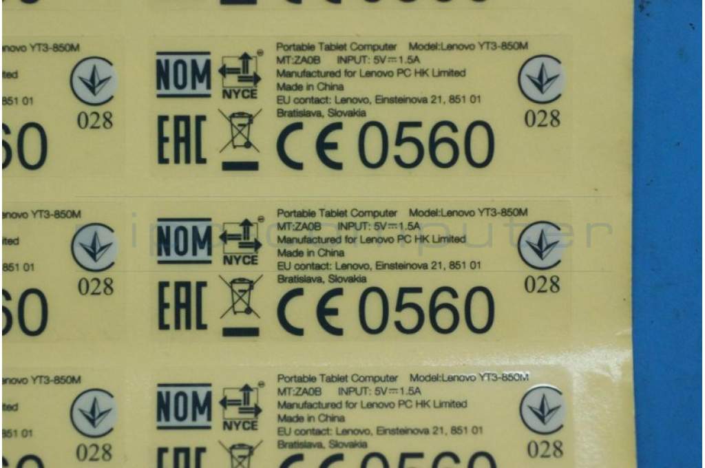 Lenovo 5L18C03461 YT3-850M MX/RU/UA Rating LBL&*70152398
