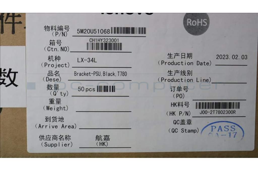 Lenovo 5M20U51068 Bracket-PSU,Black,T780