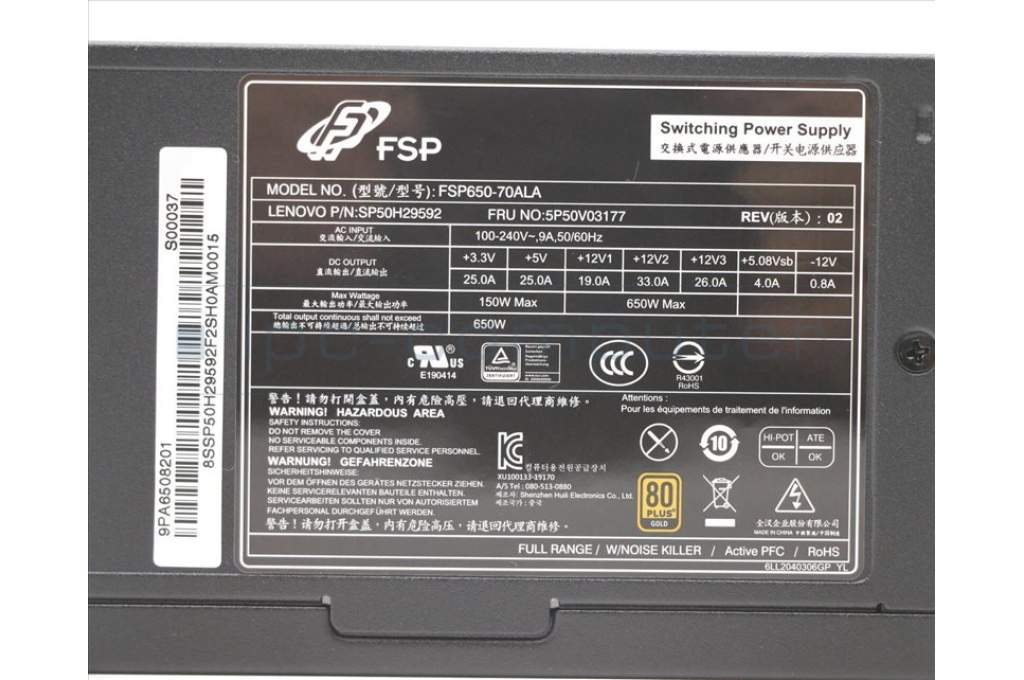 Lenovo 5P50V03177 PWR_SUPPLY 100-240Vac, 650W 90% PSU