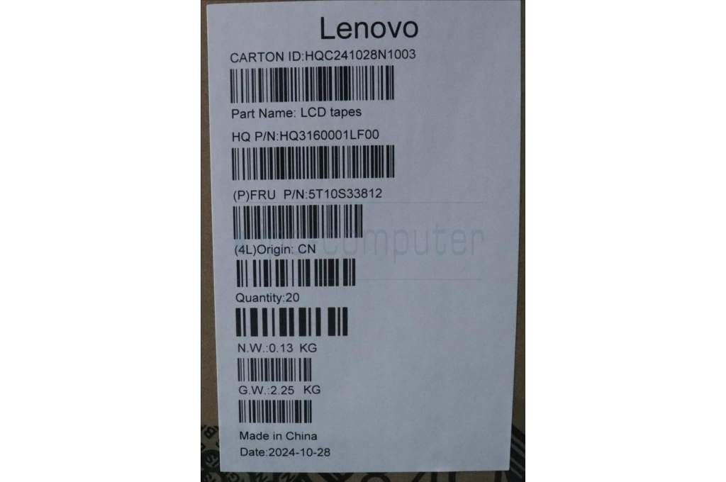 Lenovo 5T10S33812 Removable Tape H 21NH (L+R) 2.5K*5