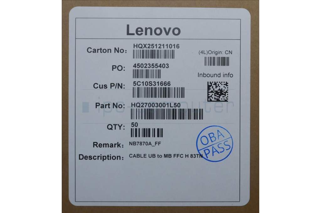 Lenovo 5C10S31666 CABLE UB to MB FFC H 83TN
