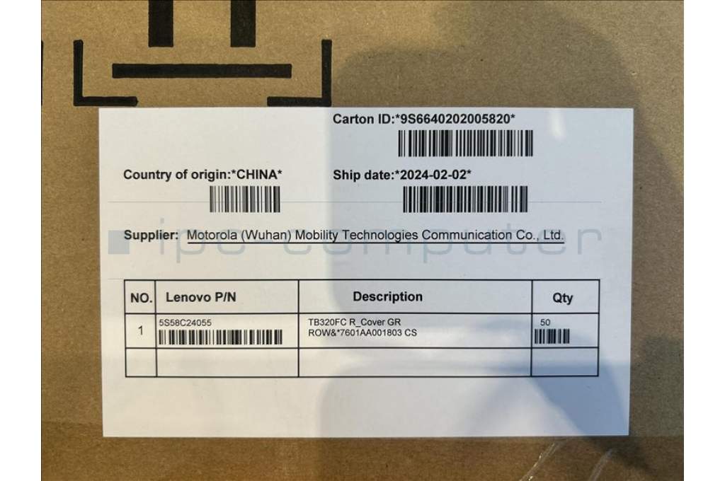 Lenovo 5S58C24055 TB320FC R_Cover GR ROW&*7601AA001803 CS