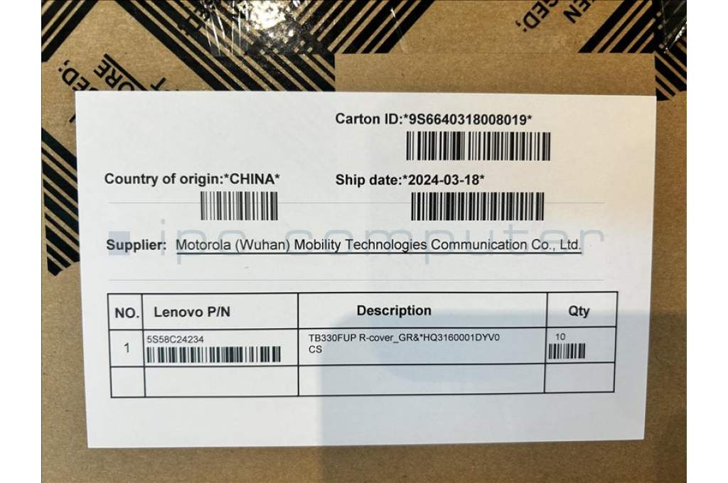 Lenovo 5S58C24234 TB330FUP R-cover_GR&*HQ3160001DYV0 CS