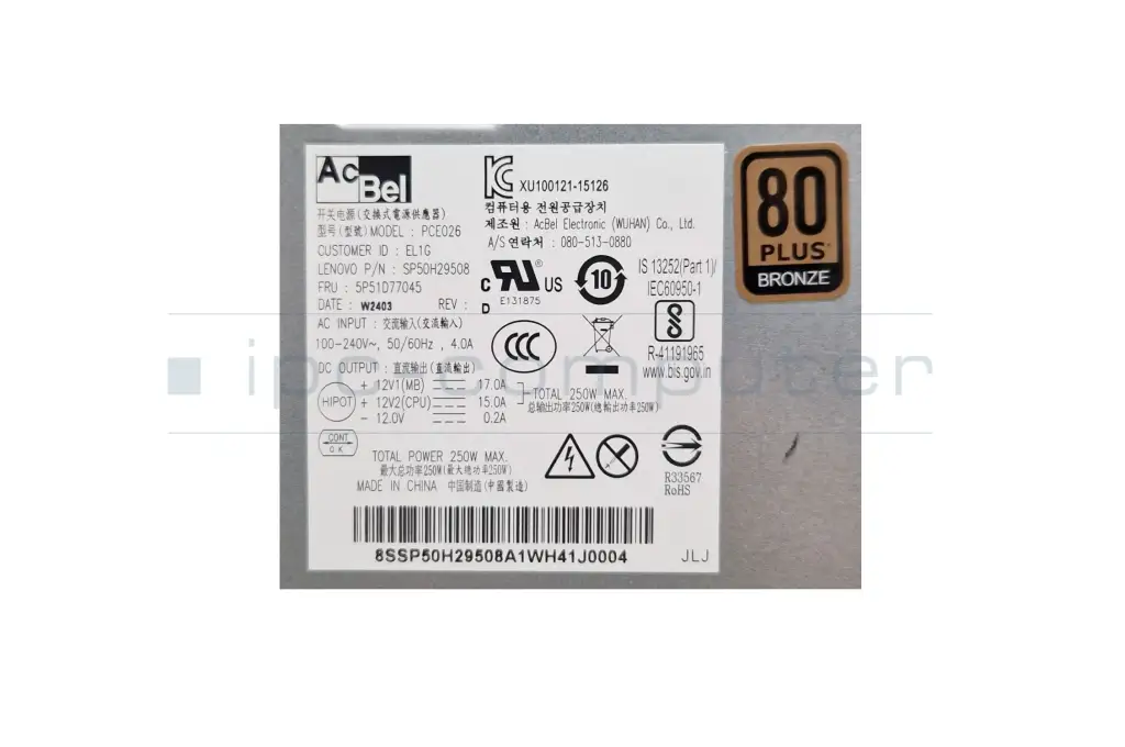 5P51D77045 Original Lenovo Desktop-PC Netzteil 250 Watt (Kabellänge: P1 33 cm / P2 61 cm)
