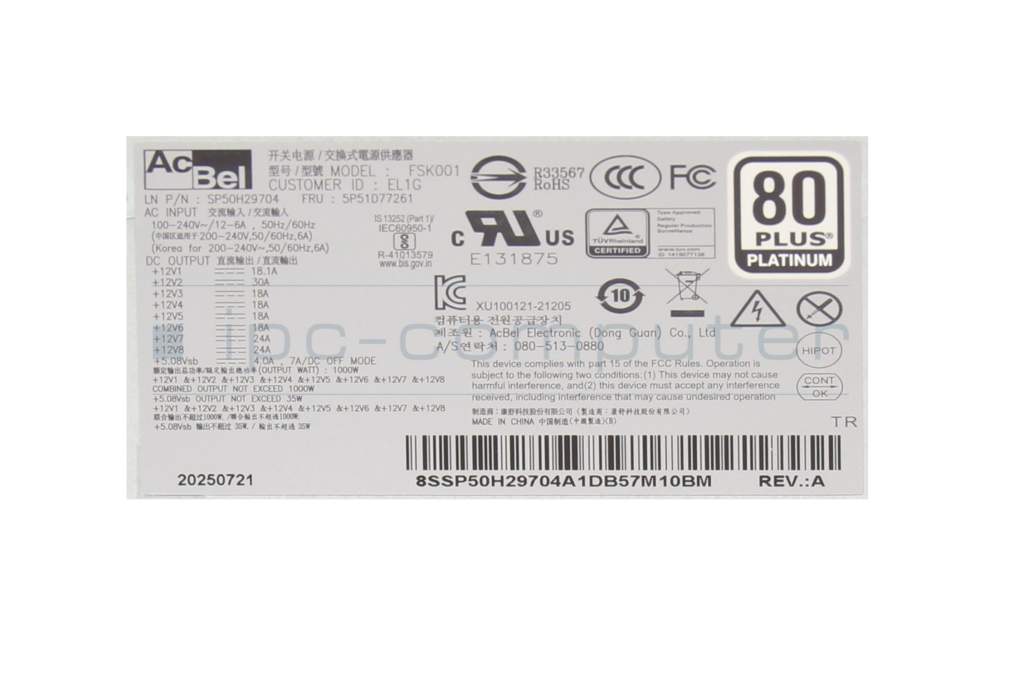 5P51D77261 Original Lenovo Desktop-PC Netzteil 1000 Watt