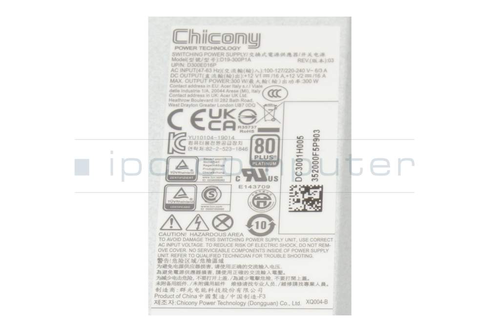 DC3001B00E Original Acer Desktop-PC Netzteil 300 Watt