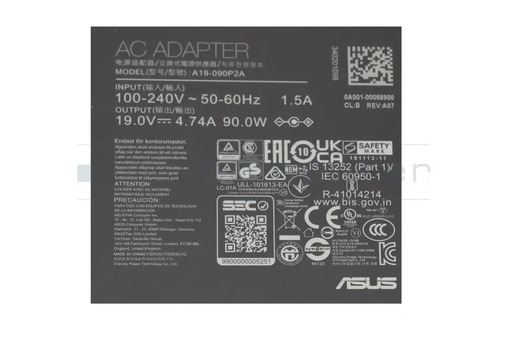 0A001-01291500 Original Asus Netzteil 90,0 Watt