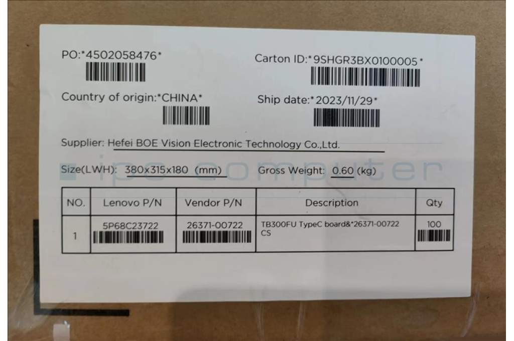 Lenovo 5P68C23722 TB300FU TypeC board&*26371-00722 CS
