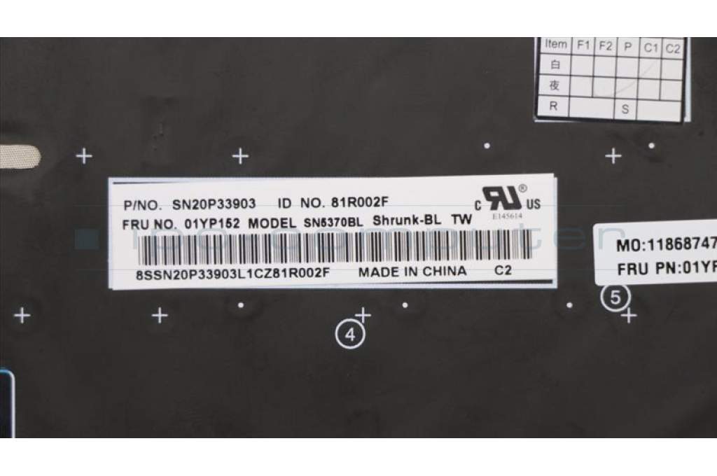 Lenovo 01YP152 NB_KYB FRU COMO SK,LTN,KB-BL,BK,TW