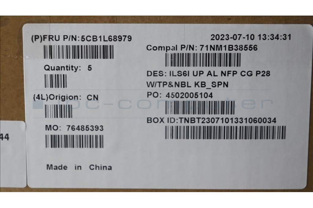 Lenovo 5CB1L68979 COVER UpCase_SPA C82XF NFP CG NBL ALDF