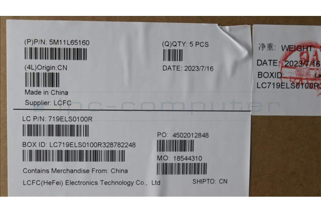 Lenovo 5M11L65160 MECH_ASM FRU KB CCV ENG BL(CHY) US BK