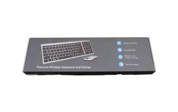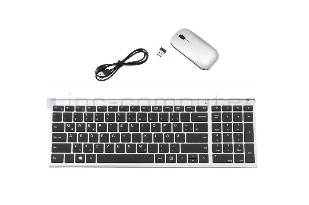 Entdecken Sie das kabellose Tastatur (DE) - und Maus Set in eleganter Metalloptik – die perfekte Kombination aus Stil und Funktionalität für Ihr Zuhause oder Büro.